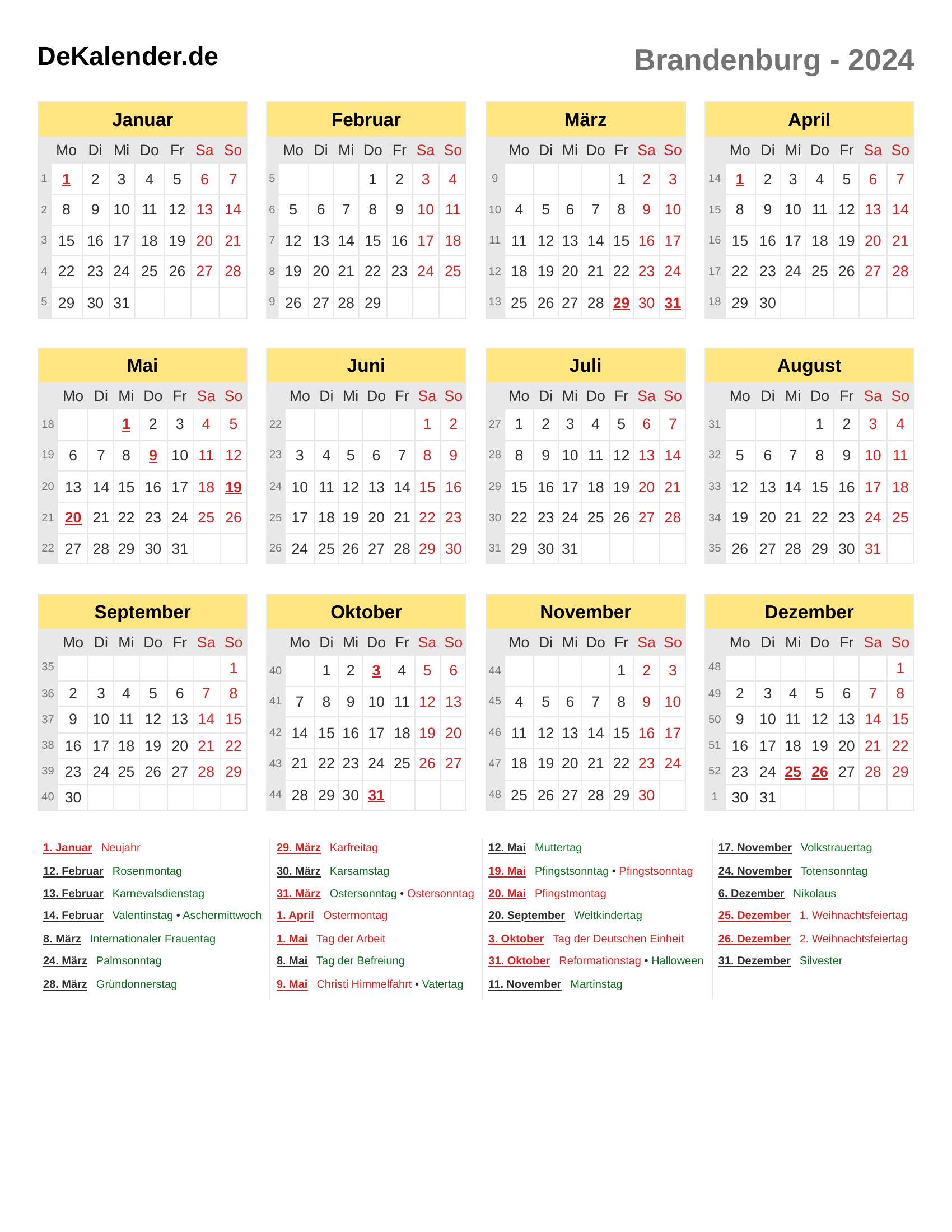 Feiertage und Gedenktage im 2024 (Brandenburg)