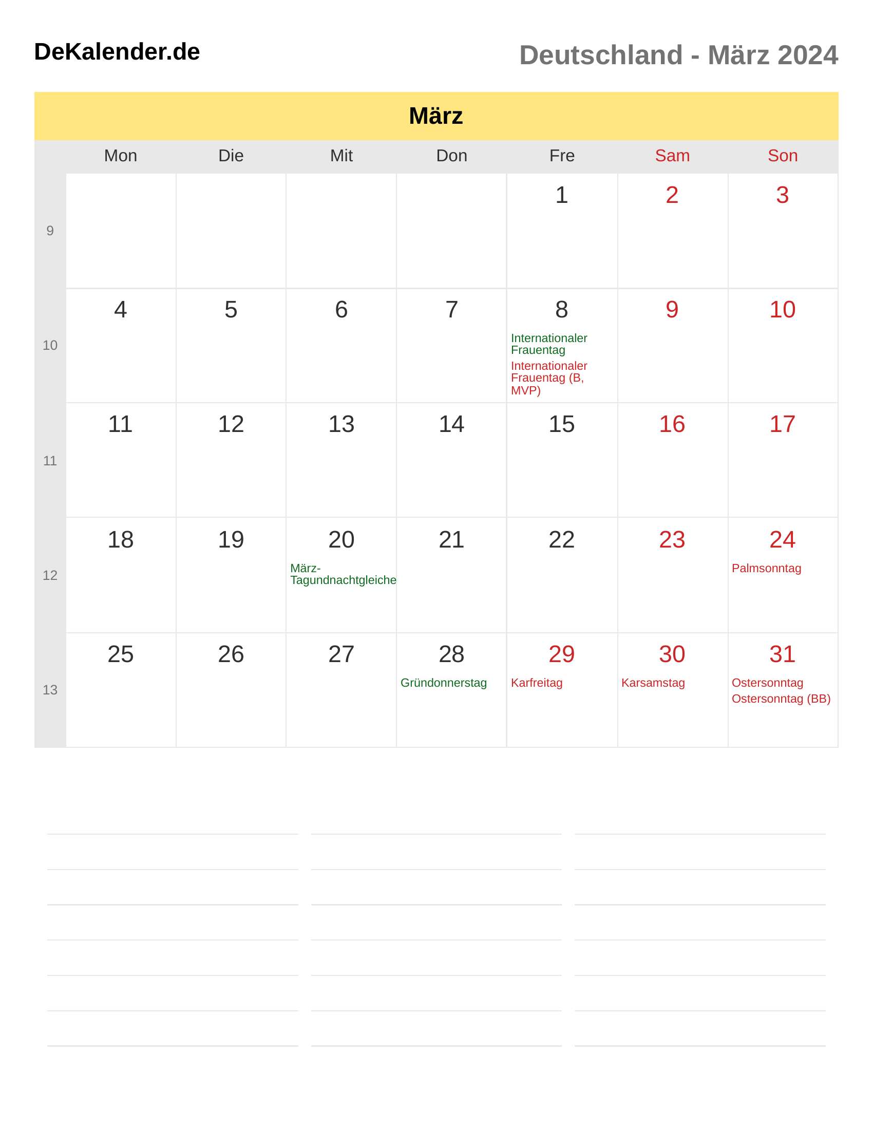 Kalender März 2024 – Deutschland
