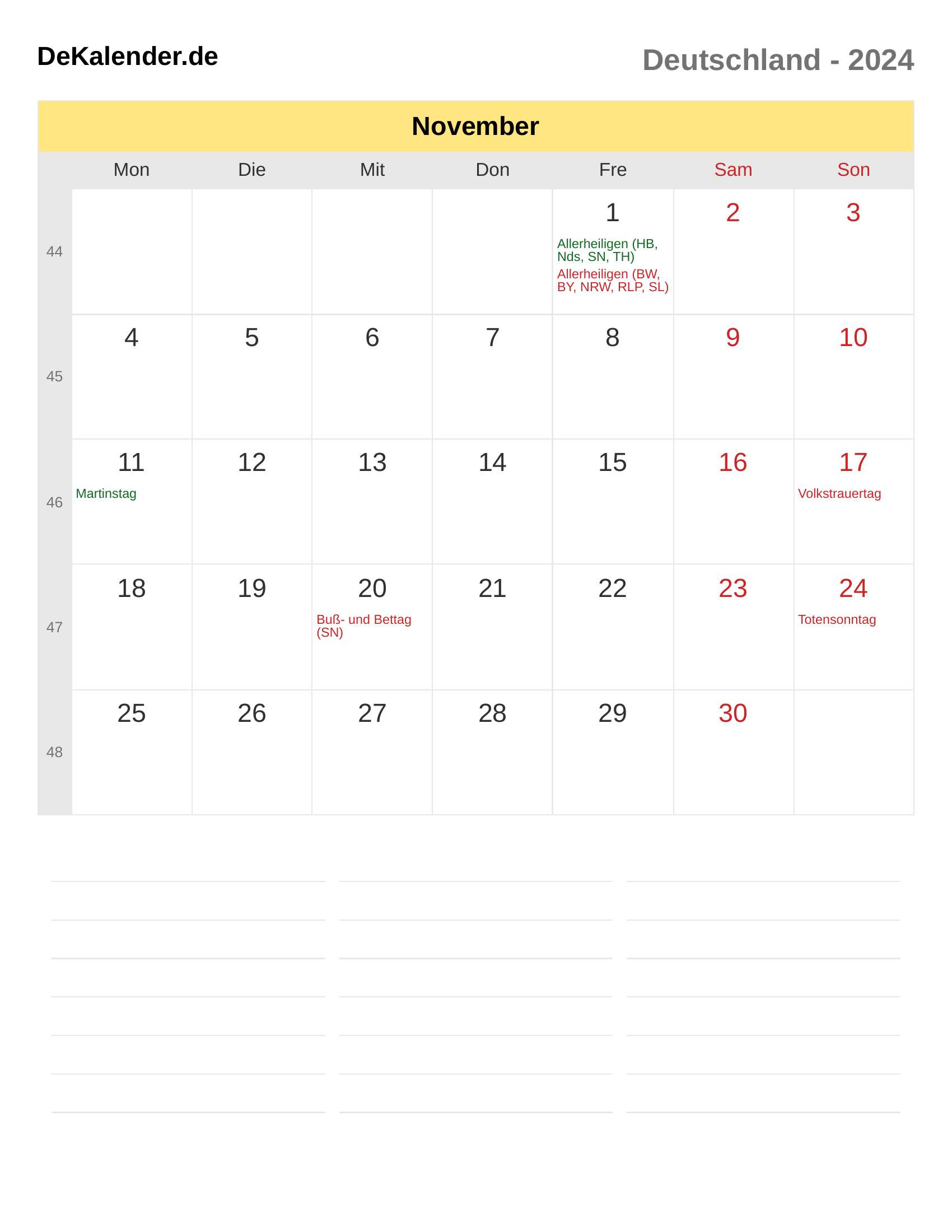 Kalender November 2024 – Deutschland