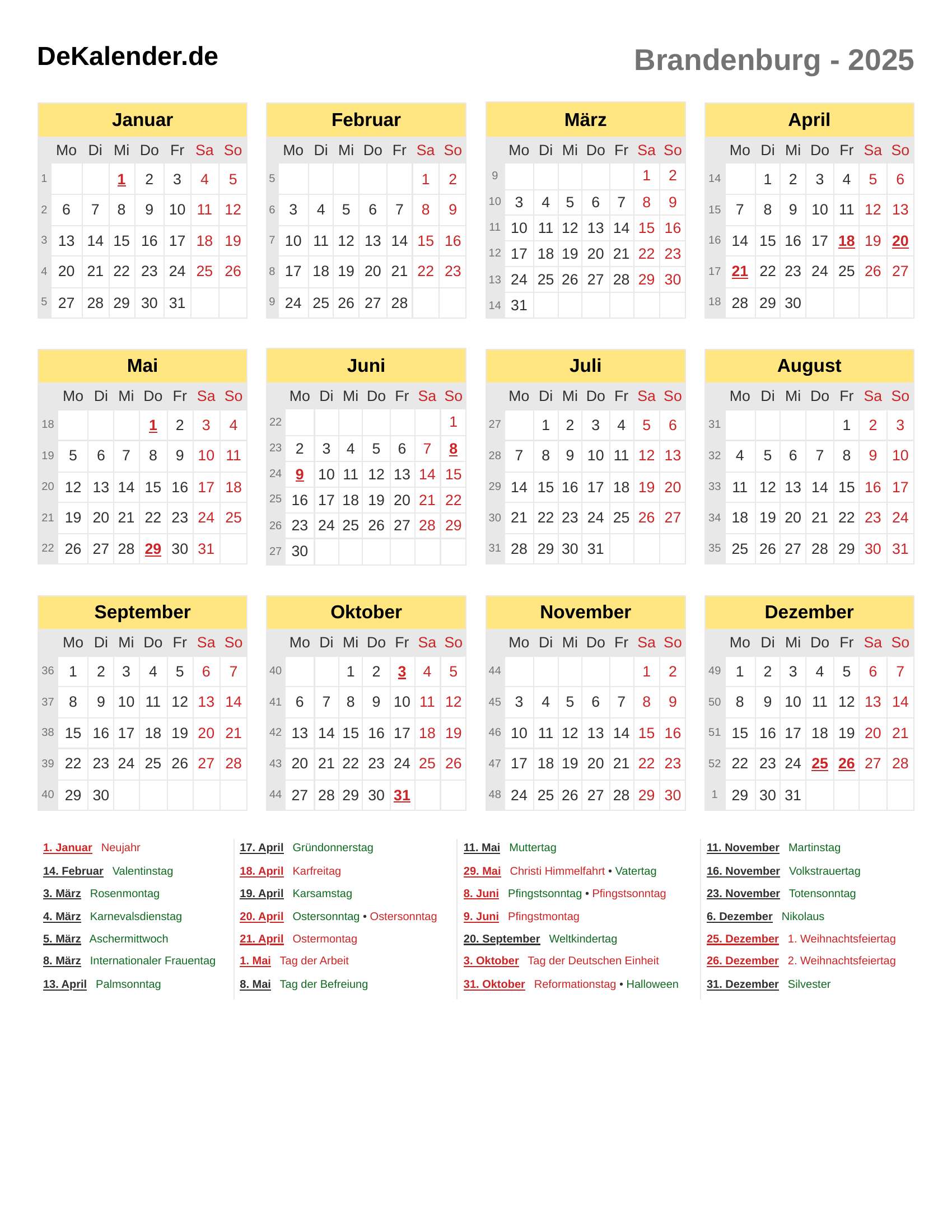 Feiertage und Gedenktage im 2025 (Brandenburg)