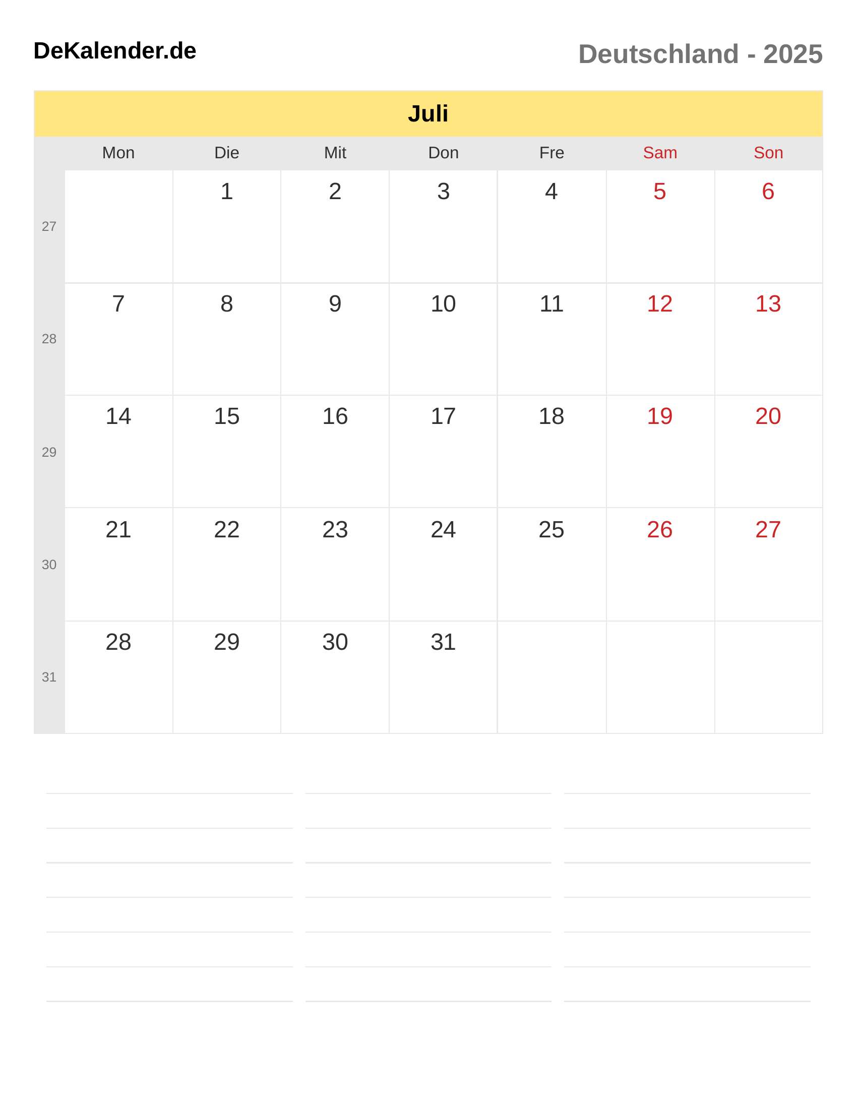 Kalender Juli 2025 – Deutschland