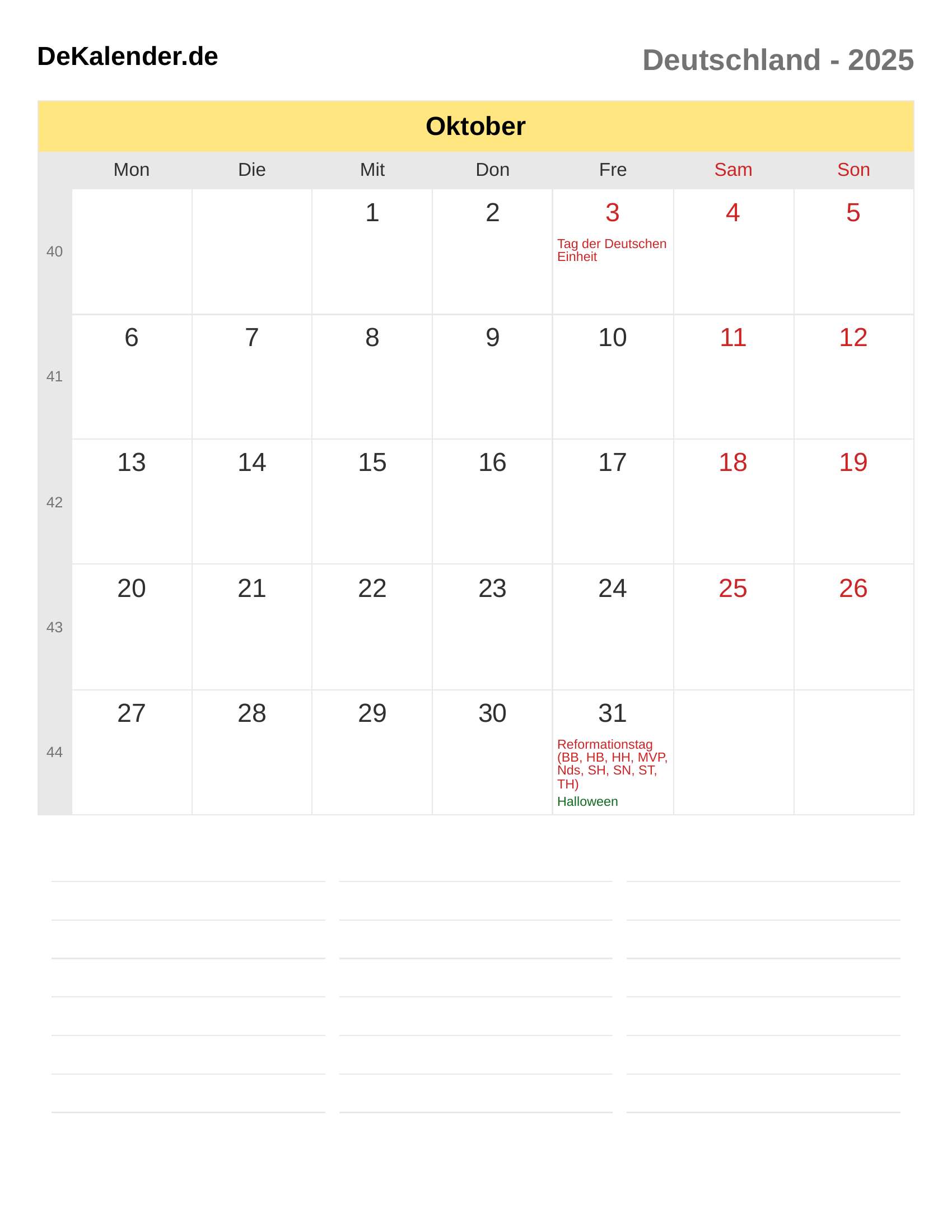 Kalender Oktober 2025 – Deutschland