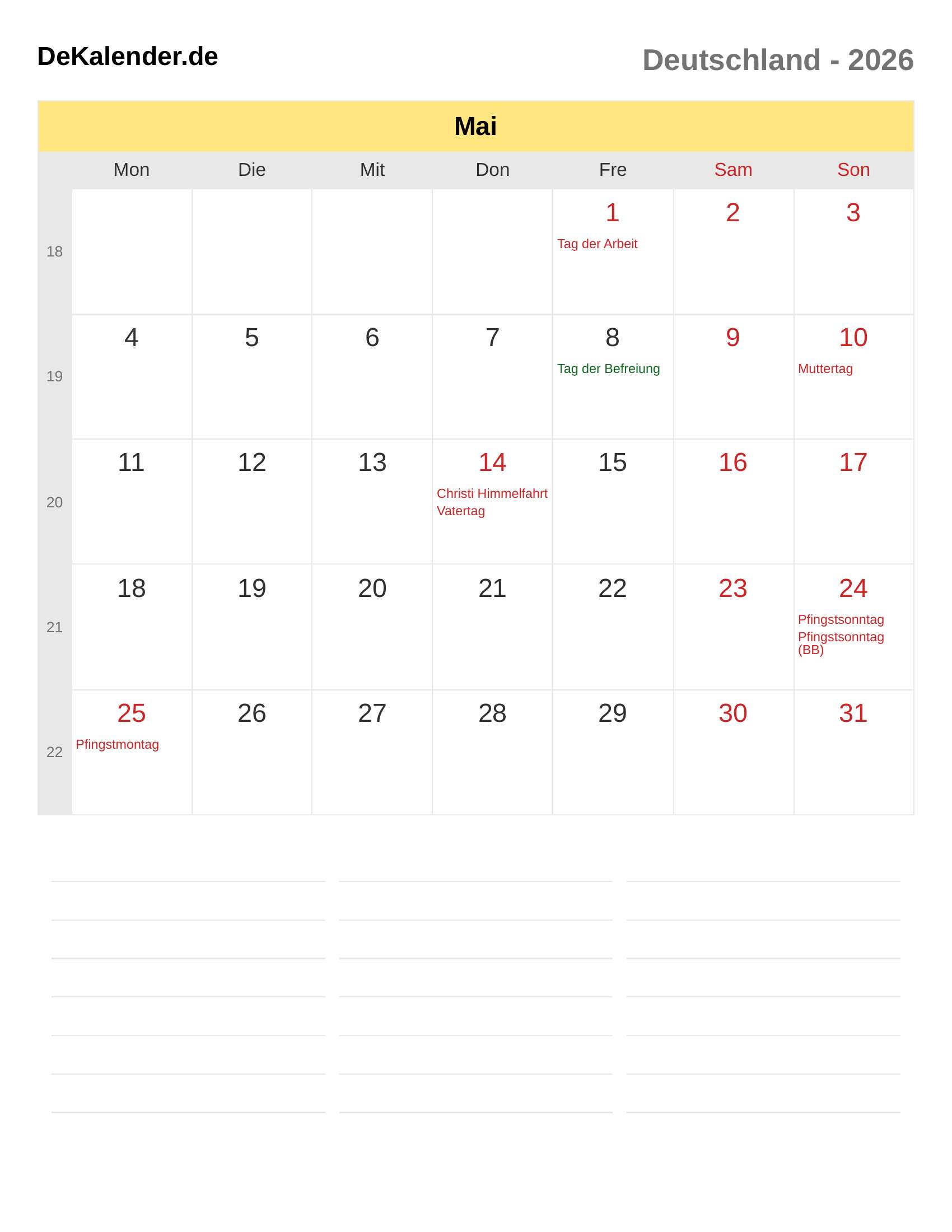 Kalender Mai 2026 – Deutschland