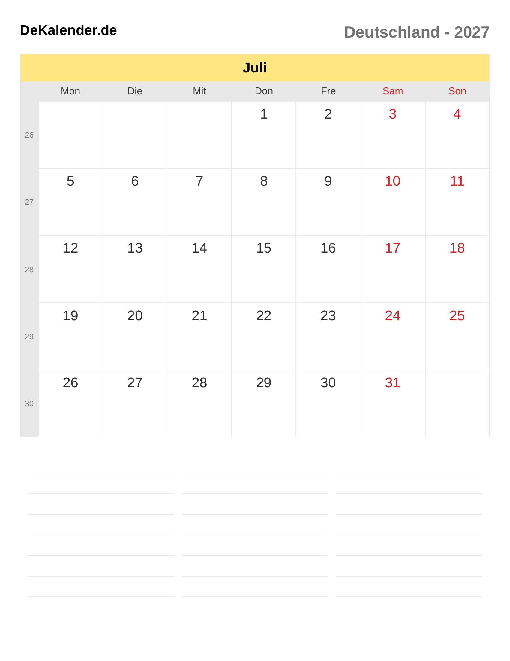 | Mon | Die | Mit | Don | Fre | Sam | Son | |