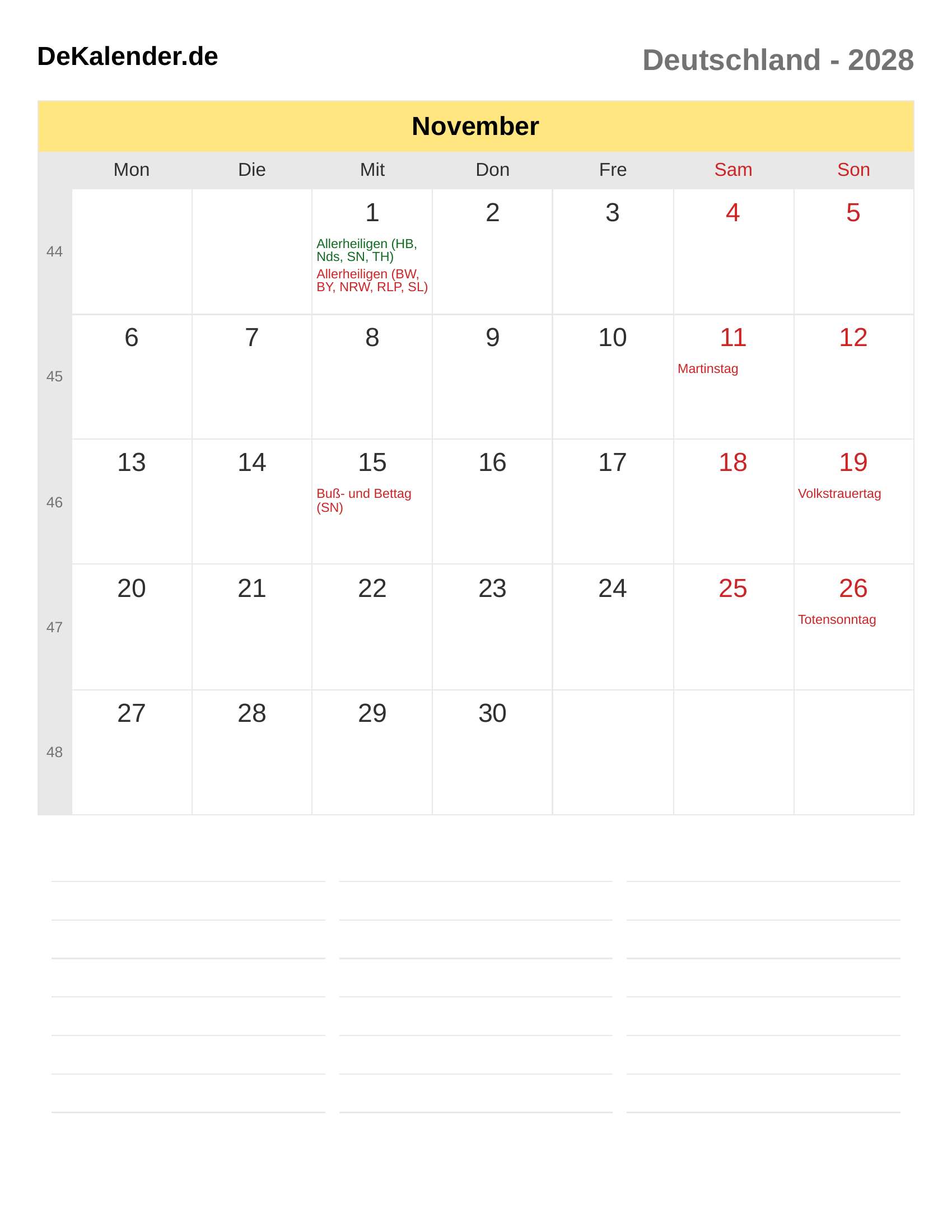 Kalender November 2028 – Deutschland