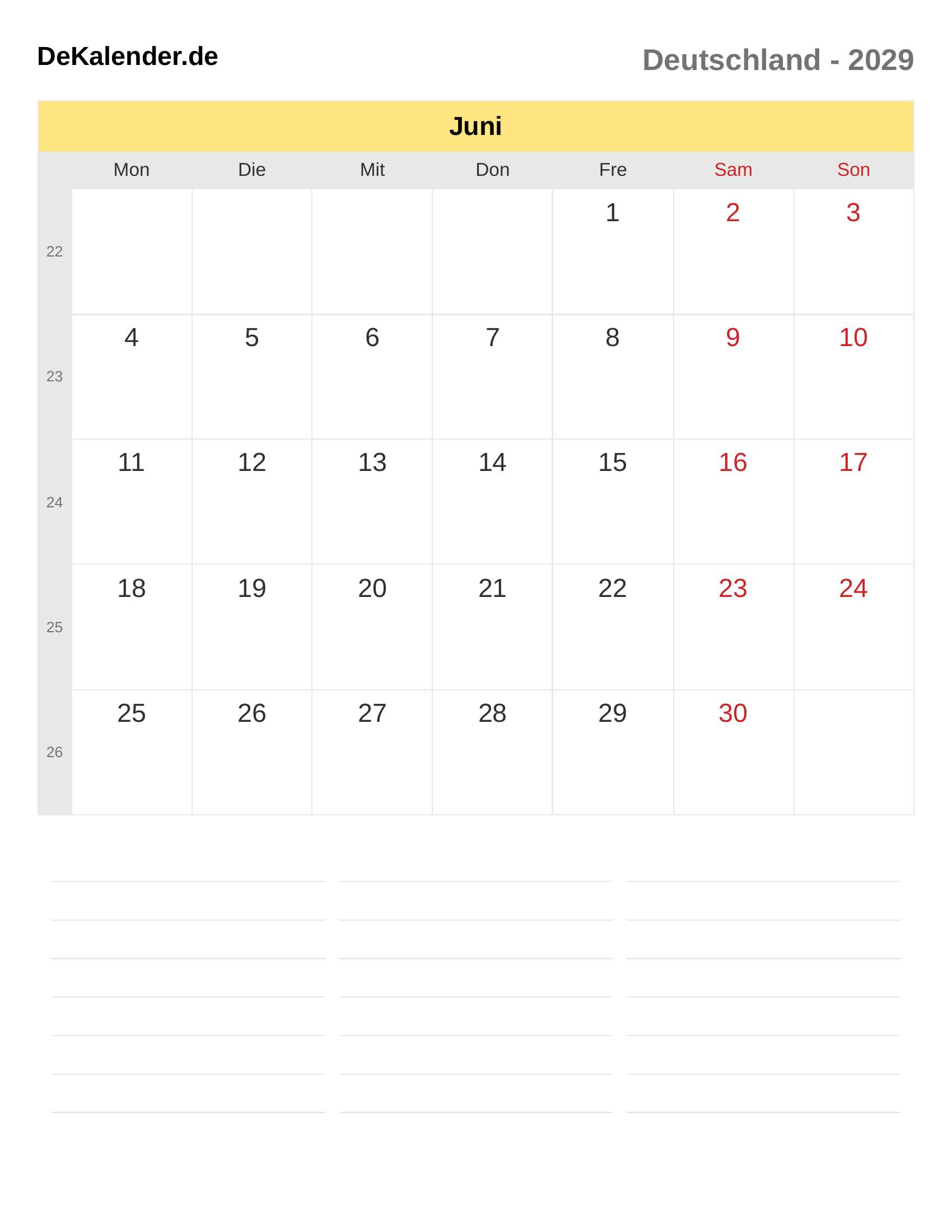 Kalender Juni 2029 – Deutschland